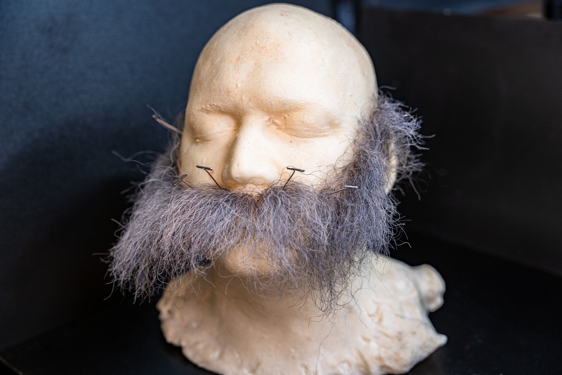 Bärte, Haarteile und Perücken werden von Hand geknüpft – je nach Anforderung mit Yakhaar oder künstlichem Haar – und mit höchster Präzision gefertigt; in Silikondummies können Haare einzeln eingestochen werden, während 3-Tage-Bärte aufgeschüttet werden, um selbst in Nahaufnahmen maximale Authentizität, Detailtiefe und filmische Glaubwürdigkeit zu gewährleisten.